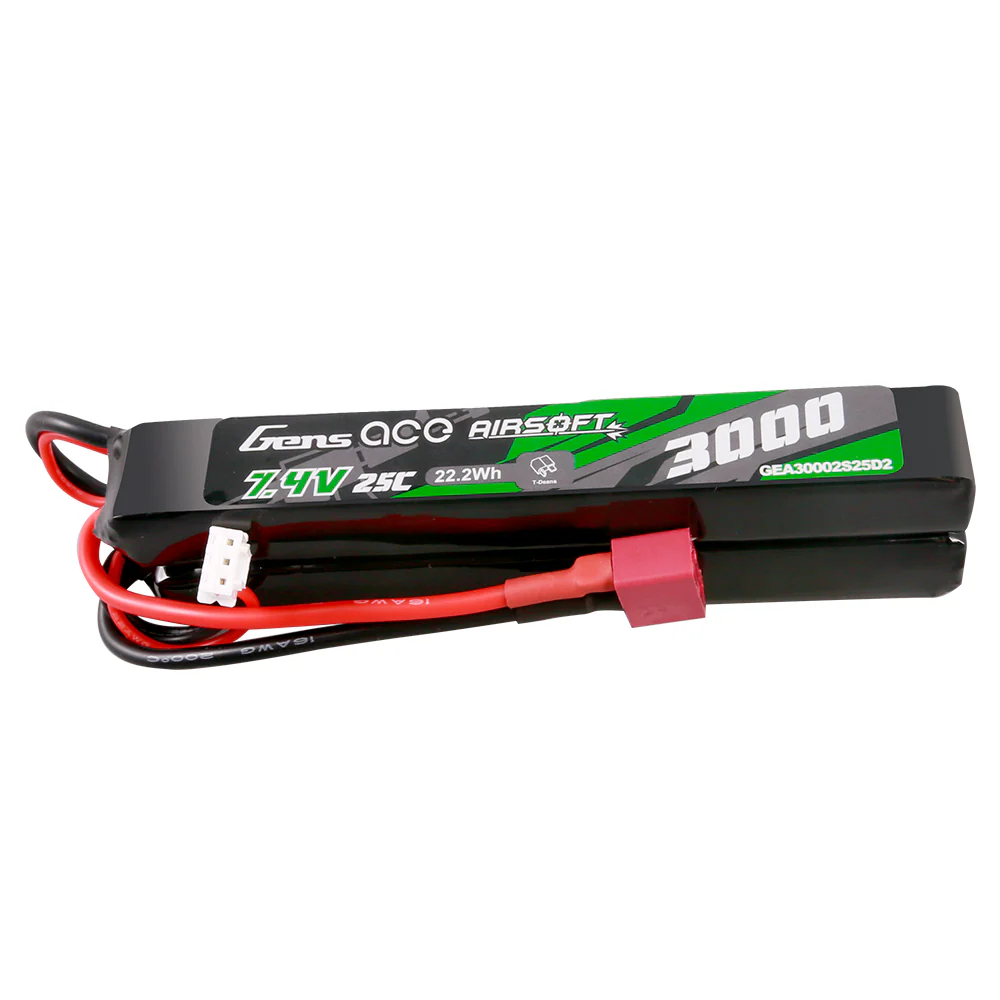 La batería LiPo Gens Ace 7,4 25C está diseñada para jugadores que buscan el máximo rendimiento en airsoft, ofreciendo una respuesta de gatillo mucho más rápida, mayor cadencia de disparo y una entrega de potencia constante incluso en configuraciones exigentes.