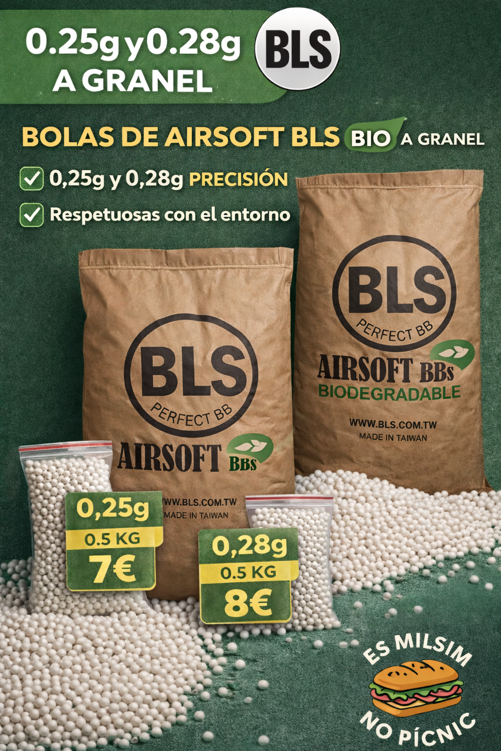 BLS, fabricante taiwanés con más de 20 años de experiencia, es una referencia mundial en airsoft gracias a la constancia, precisión y calidad de fabricación de sus bolas. Utilizadas por jugadores profesionales y organizadores de campos, las BLS garantizan un rendimiento fiable en todo tipo de réplicas.