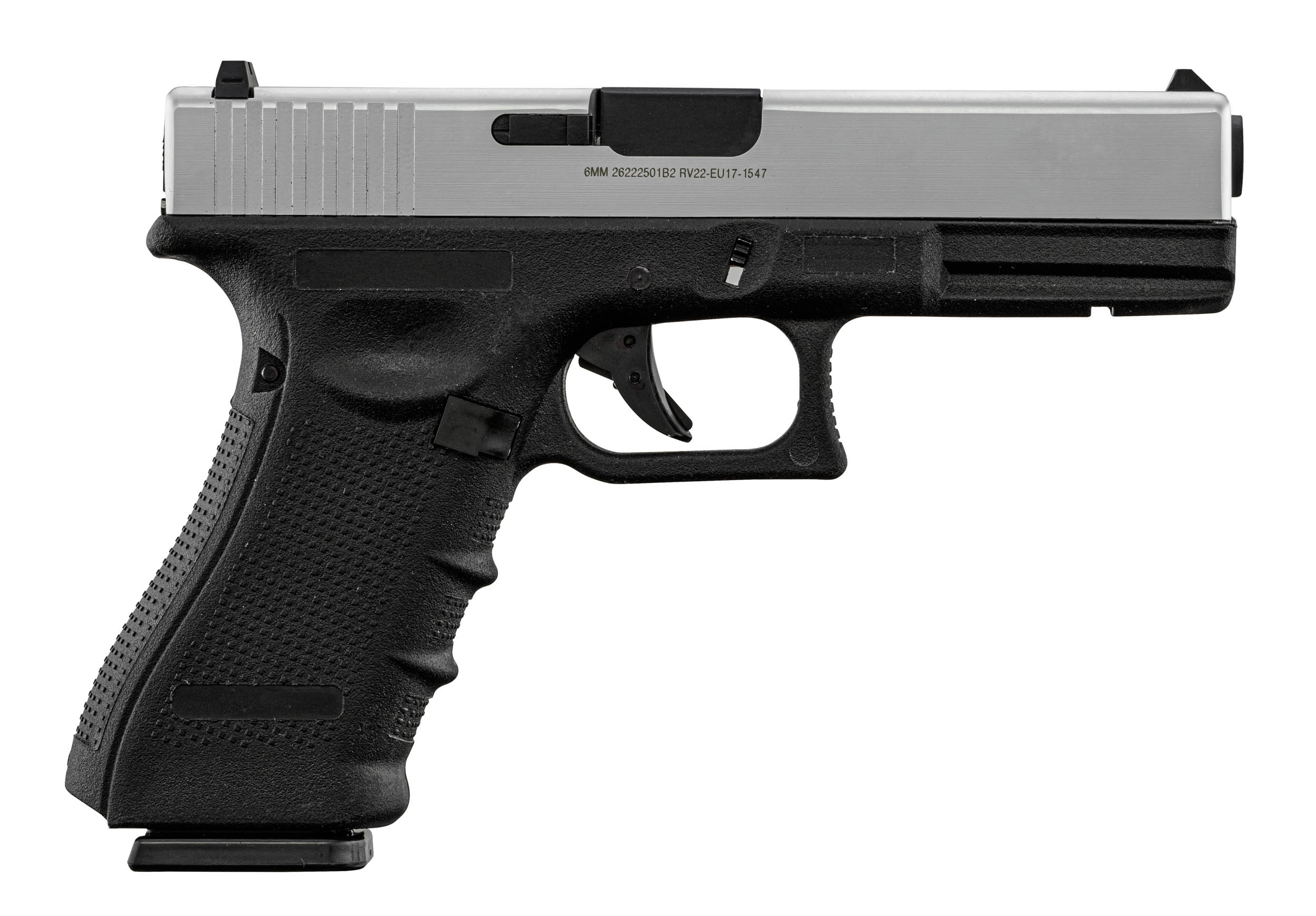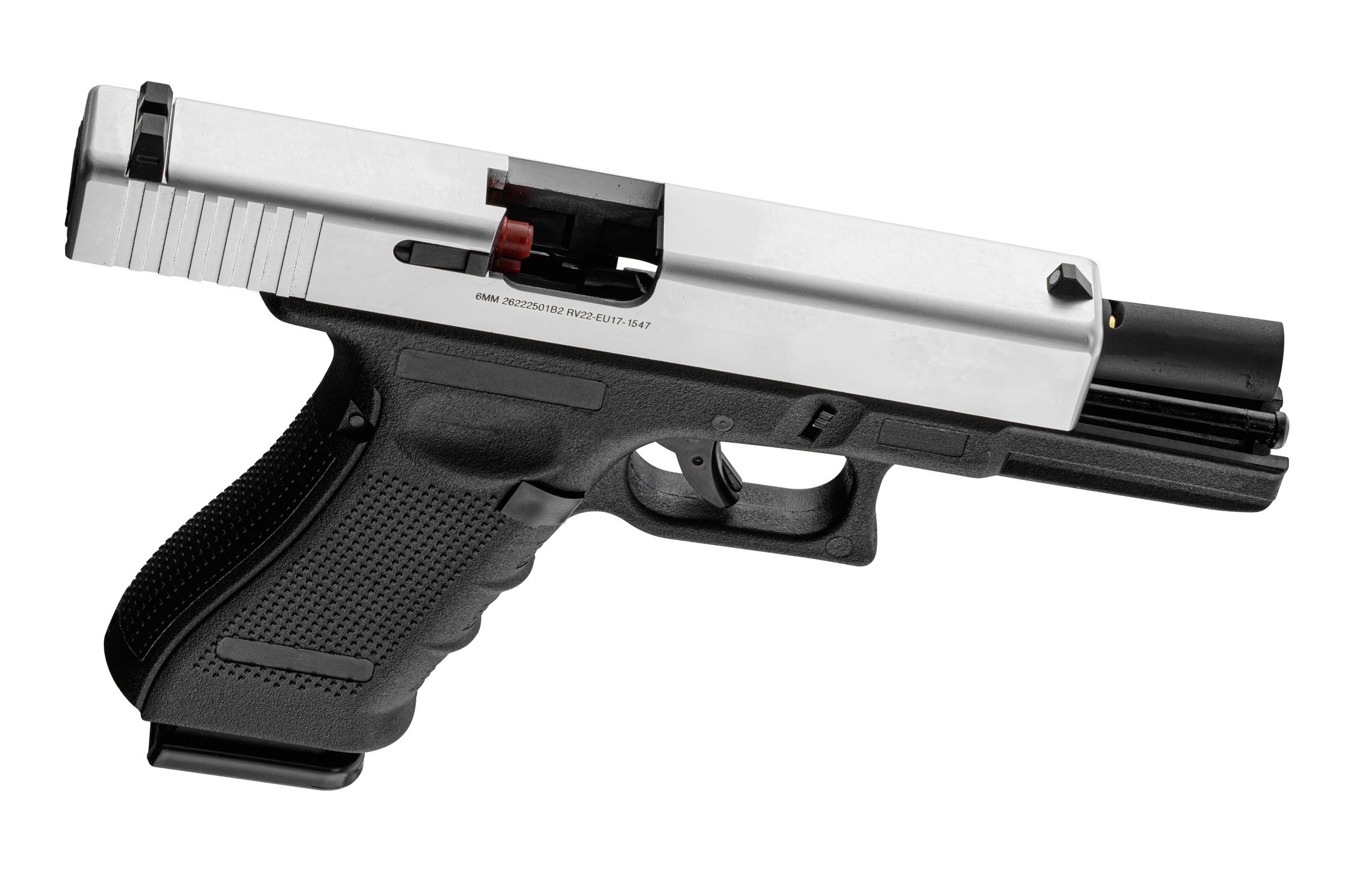 RAVEN,PISTOLA 6 mm GAS GBB EU7 COLOR NEGRO Y PLATEADO.
