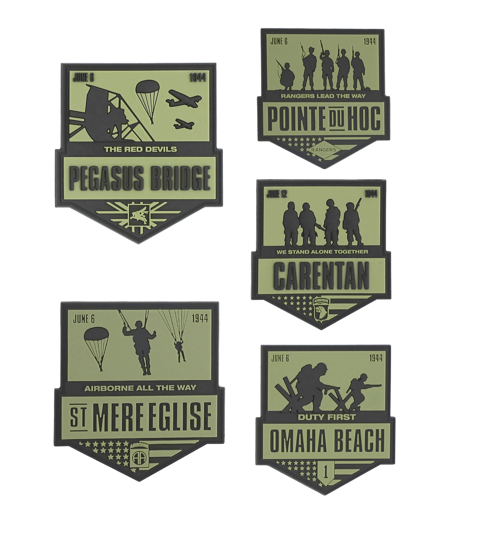 Colección de parches de acciones heroicas ocurridas durante la campaña de Normandía.