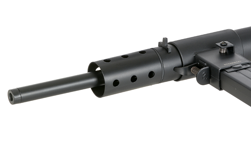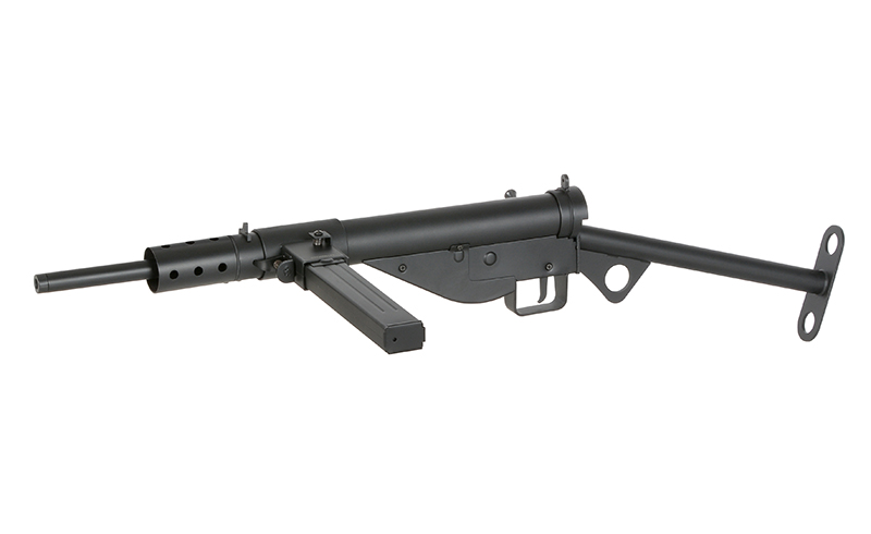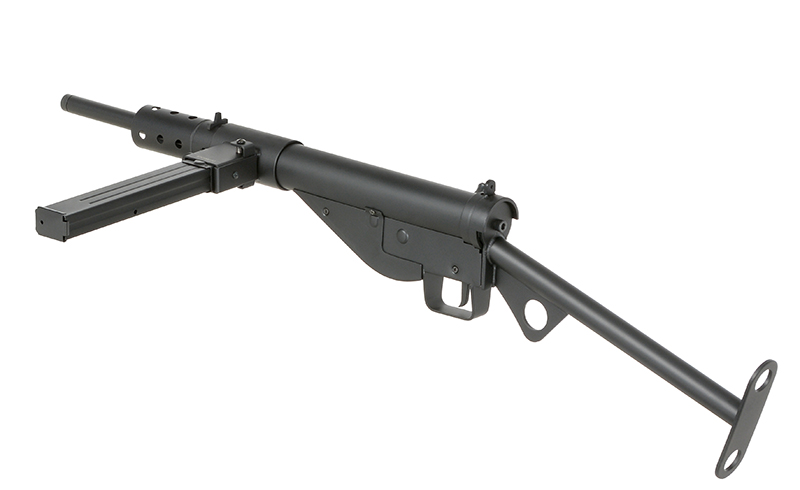 La Sten MK II de AGM es una réplica que recupera uno de los subfusiles más emblemáticos de la Segunda Guerra Mundial. El modelo original destacó por su diseño sencillo, resistente y extremadamente rápido de fabricar, creado para suplir la escasez de armamento tras la evacuación de Dunkerque. Su construcción minimalista permitía que un solo operario ensamblara un arma completa en pocas horas, convirtiéndose en un símbolo de practicidad y eficiencia.