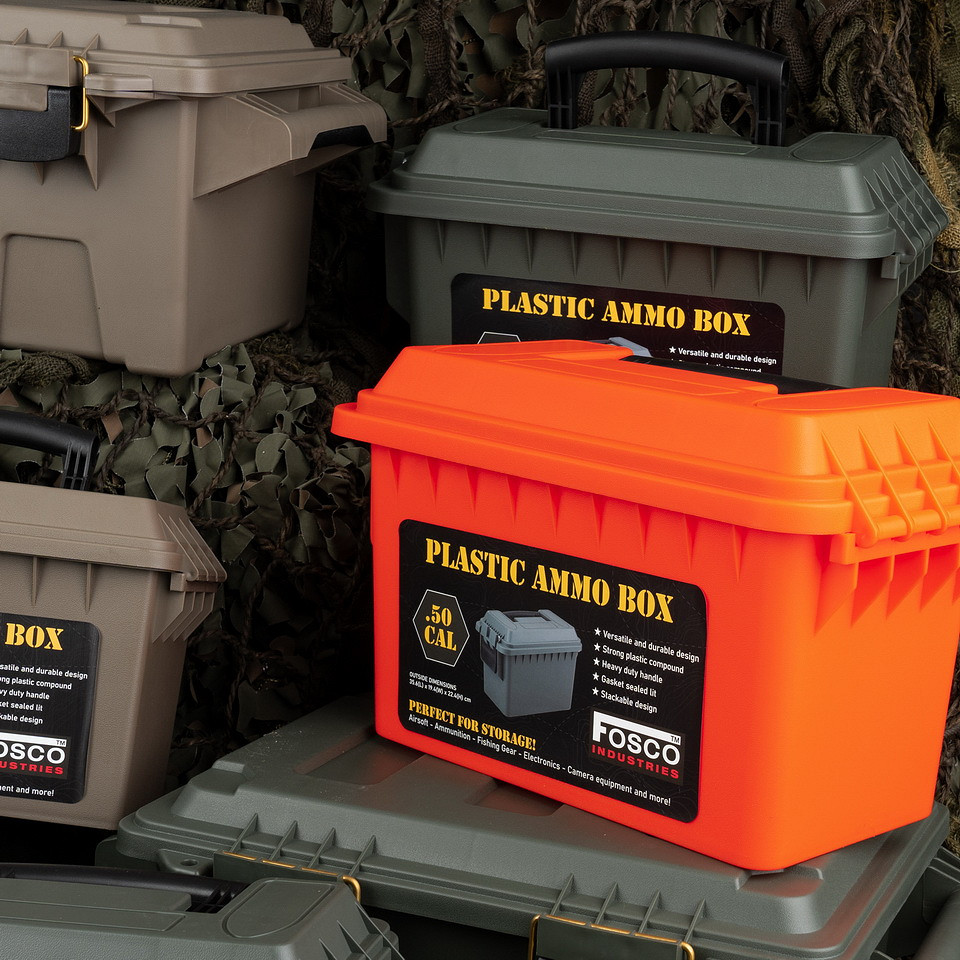CAJA DE MUNICIÓN EN PLÁSTICO CALIBRE .50, PARA KIT DE SUPERVIVENCIA.