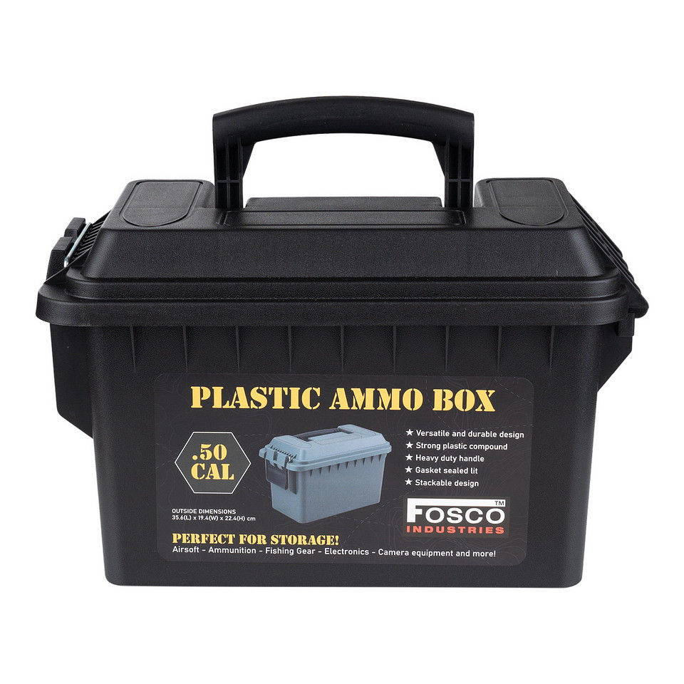 CAJA DE MUNICIÓN EN PLÁSTICO CALIBRE .50, COLOR NEGRO.